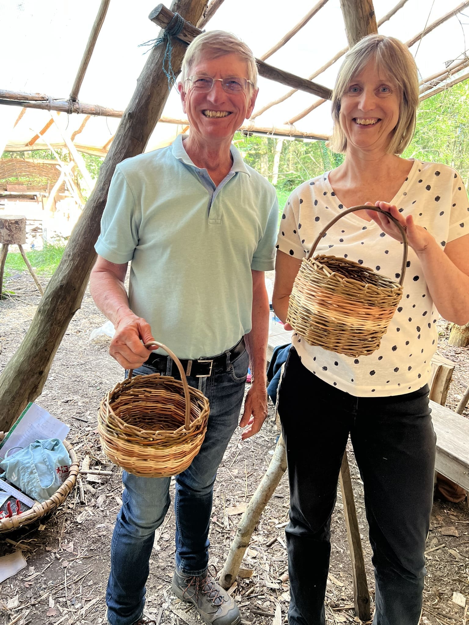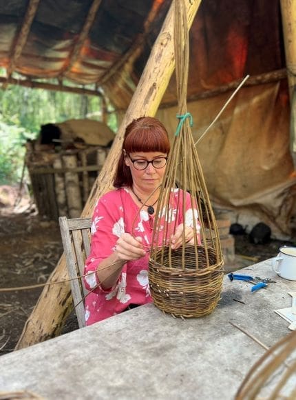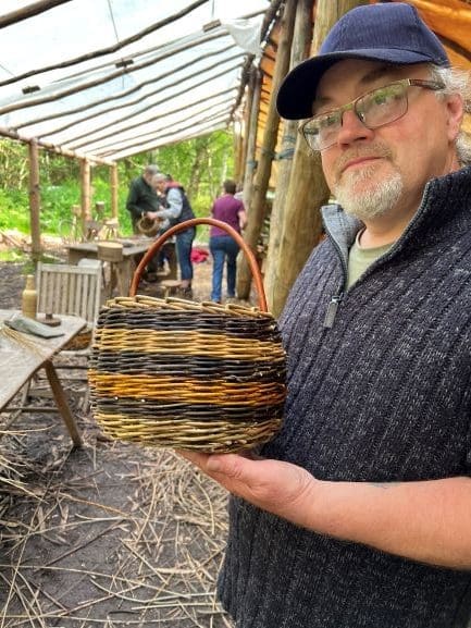 You will learn how to make a round base, choose stakes and stake up, then learn a weave called waling to make the main body of the basket. You will use a simple trac border at the top to hold it all together and then add a handle and peg the handle to keep it secure.